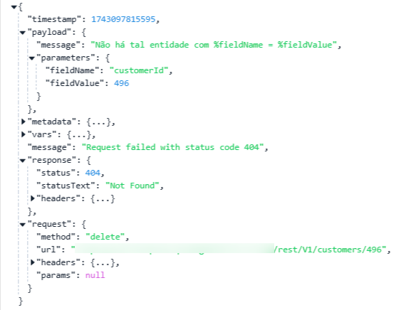| ID do cliente (customer\_id)               | Campo de texto | Permite definir o identificador único do cliente cadastrado que será deletado.                                                                                             |